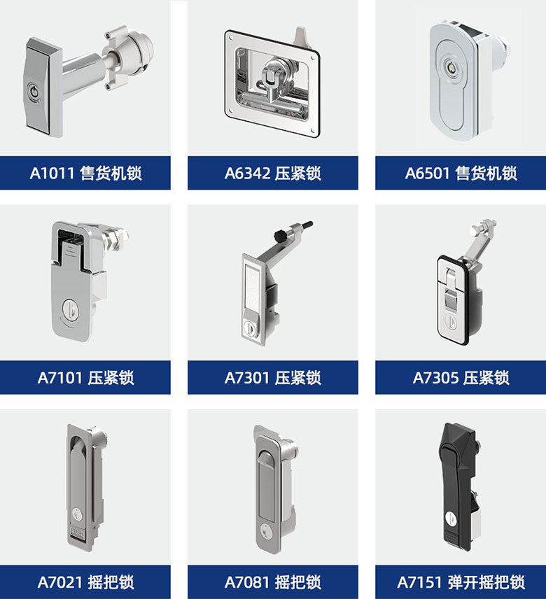 轉舌鎖有各種類(lèi)型、鑰匙轉動(dòng)角度和抓取范圍可供選擇。
