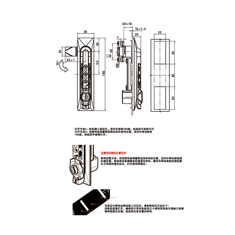 提拉式搖把密碼鎖-A7054